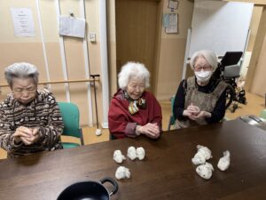 ブランド米のつや姫をいただき、入居者様主体でおにぎりを作って提供致しました。